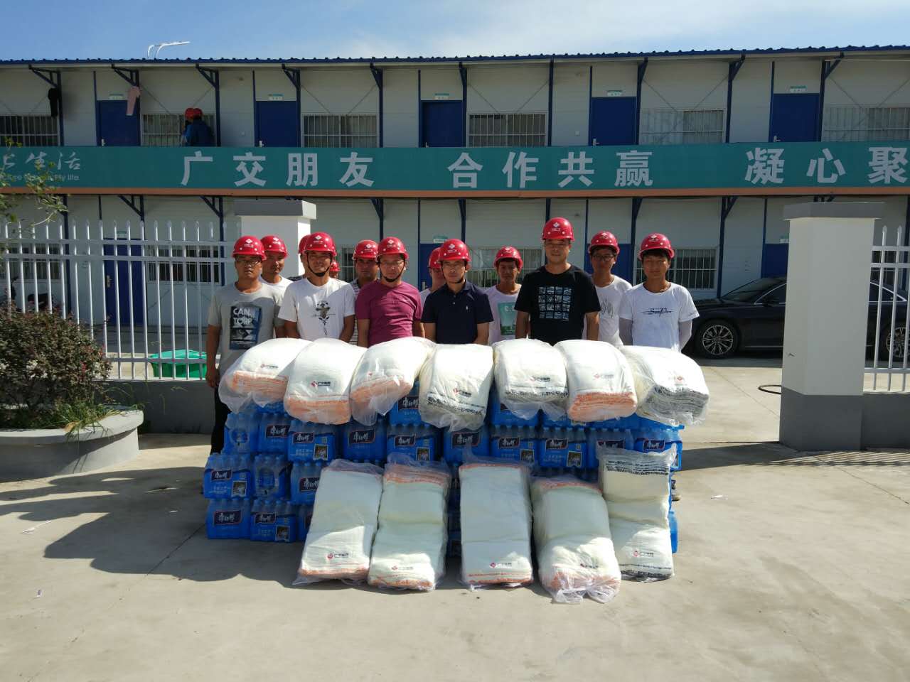 時至高溫酷暑,為保障職工身心健康,公司開展夏季“送清涼”活動,成立以張濤董事長為組長,“夏季防汛和防暑安全生產(chǎn)領(lǐng)導(dǎo)小組”。7月18日起對在建項目進行“送清涼”慰問:每到一處,認(rèn)真向工人了解生產(chǎn)、生活狀況,把水和防暑降溫物品發(fā)放到工人手里,給奮戰(zhàn)在一線的工人送去絲絲清涼。對工人們冒酷暑、戰(zhàn)高溫堅守崗位表示敬意;同時要求項目部一定抓好夏季防暑降溫工作,嚴(yán)格執(zhí)行相關(guān)制度,合理安排作息時間,調(diào)整飲食注意衛(wèi)生、改善勞動及住宿條件,確保一線工人的身體健康和生命安全。 張濤董事長針對高溫期間的工作特別強調(diào):1、認(rèn)真落實企業(yè)安全生產(chǎn)主體責(zé)任。管理人員要統(tǒng)一思想,明確分工,一崗雙責(zé),安全、質(zhì)量齊抓共管;2、切實加強現(xiàn)場起重機械和防高墜專項治理。對生產(chǎn)安全事故易發(fā)區(qū)域要重點管控,及時消除施工現(xiàn)場安全隱患,加強建筑起重機械管理規(guī)范,杜絕“三違”行為,保障施工項目安全生產(chǎn)持續(xù)穩(wěn)定。3、確保作業(yè)人員職業(yè)健康。高溫天氣應(yīng)合理安排工人作息時間,不得為趕工期隨意加班加點,要采取“做兩頭、歇中間”或輪換作業(yè)的辦法,避免高溫日照曝曬、疲勞作業(yè)和防止職工中暑。