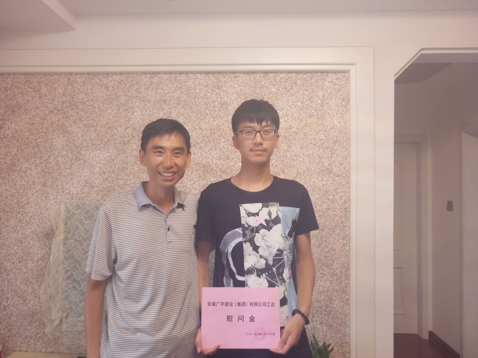 開啟新征程,共筑大學(xué)夢(mèng) ——廣宇工會(huì)助學(xué)慰問行 金秋八月,激情奔放。8月16日上午,廣宇集團(tuán)工會(huì)人員一行到胡巨偉、張亞偉同志家里,共同祝賀胡巨偉愛子胡俊杰、張亞偉愛女張玥兩位學(xué)子金榜題名。十年圓一夢(mèng),終身難感恩。人生如船,夢(mèng)想是帆,兩位學(xué)子勤奮好學(xué),如愿大學(xué)夢(mèng)。工會(huì)王主席寄語:希望二位同學(xué)不忘初心,不忘師恩,不負(fù)眾望,在新的求學(xué)路上,一帆風(fēng)順,學(xué)業(yè)有成!