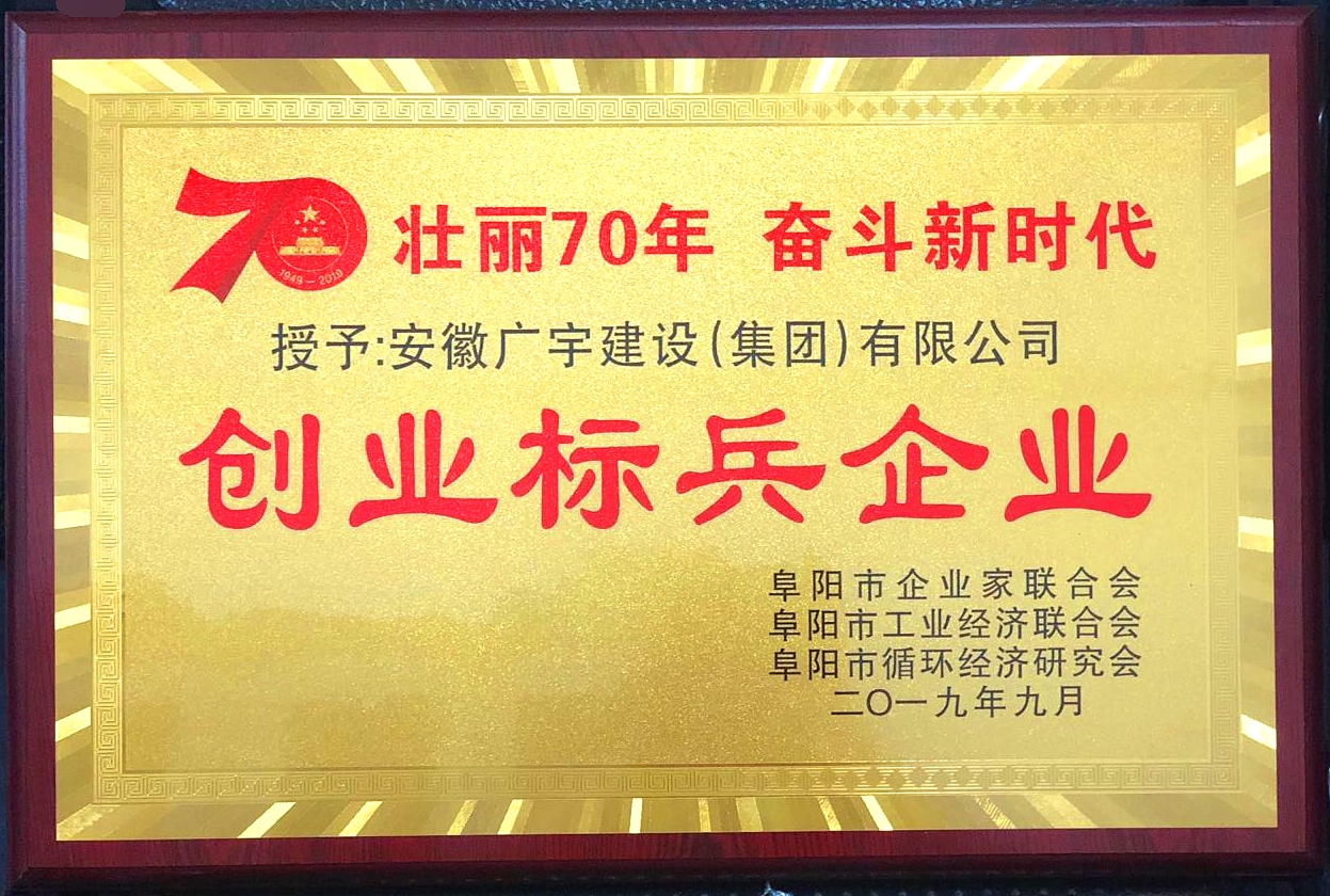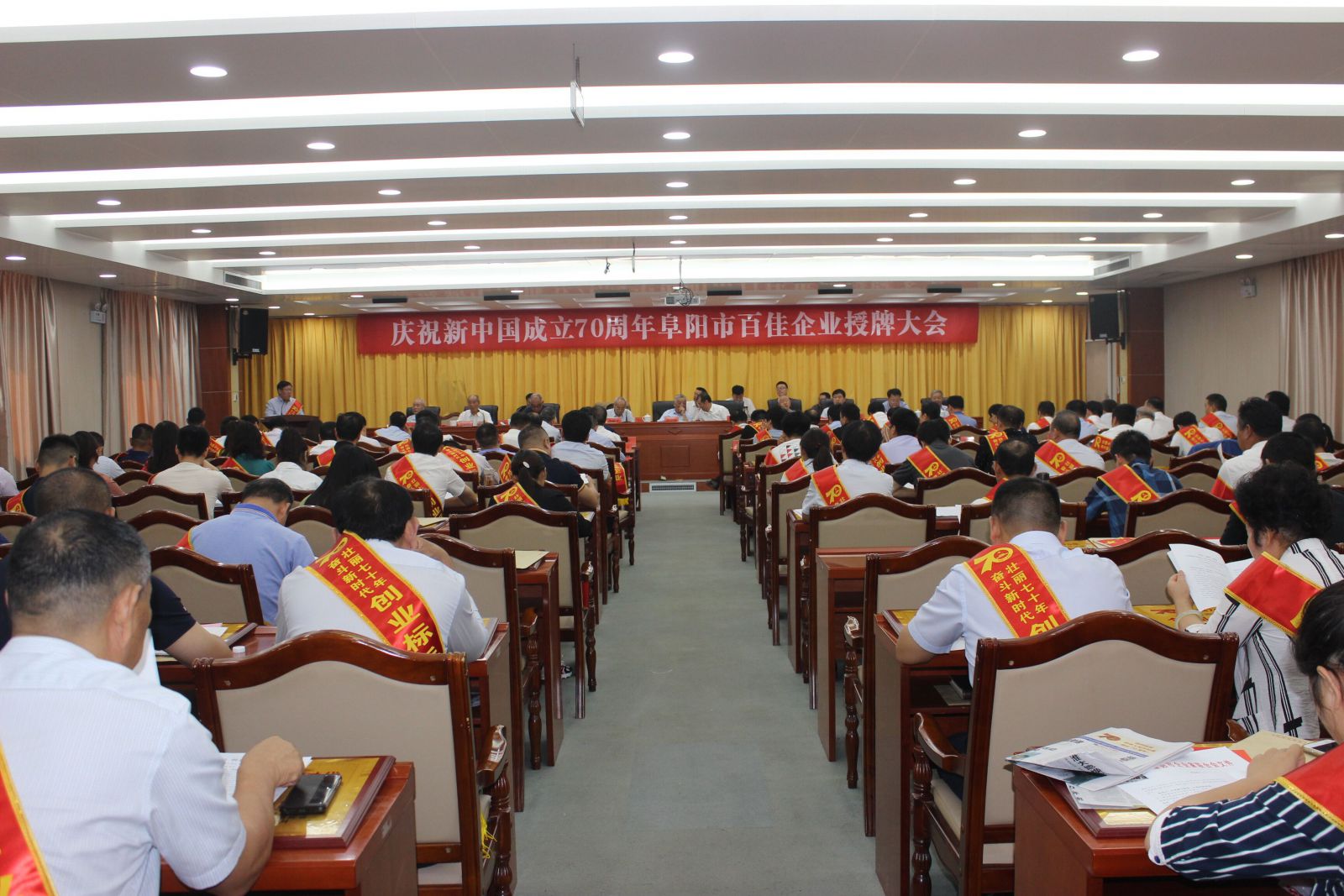 9月27日上午,在“慶祝新中國(guó)成立70周年阜陽(yáng)市百佳企業(yè)授牌大會(huì)”,集團(tuán)公司榮獲由阜陽(yáng)市企業(yè)家聯(lián)合會(huì)、阜陽(yáng)市工業(yè)經(jīng)濟(jì)聯(lián)合會(huì)、阜陽(yáng)市循環(huán)經(jīng)濟(jì)研究會(huì)頒發(fā)的“壯麗70年 奮斗新時(shí)代 創(chuàng)業(yè)標(biāo)兵企業(yè)”榮譽(yù)稱號(hào)。公司董事長(zhǎng)張濤先生代表公司出席了此次大會(huì)。