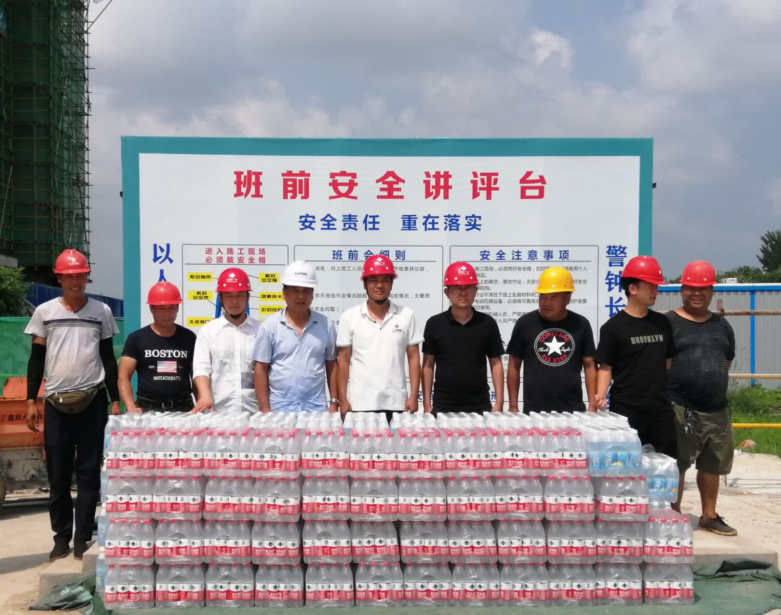 正值夏季高溫,項(xiàng)目部一線工人正冒著酷暑辛勤的勞動(dòng)著,為切實(shí)保護(hù)廣大一線工人的生命安全和身心健康,防止炎熱夏季中工人高溫中暑,保障安全生產(chǎn)工作有序進(jìn)行,集團(tuán)公司開展了2021年夏季“送清涼”活動(dòng),給現(xiàn)場(chǎng)工人送上慰問(wèn)物品。
